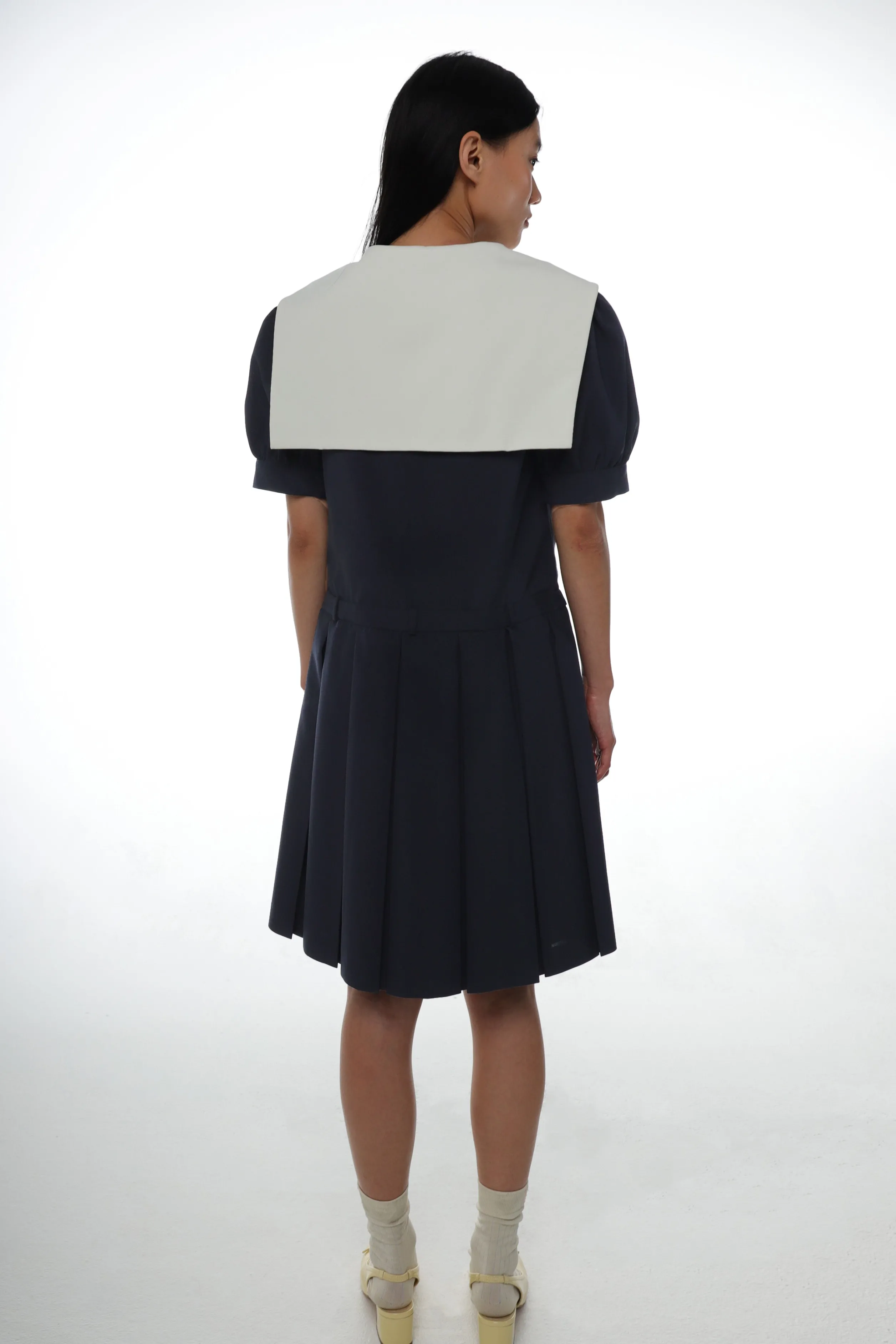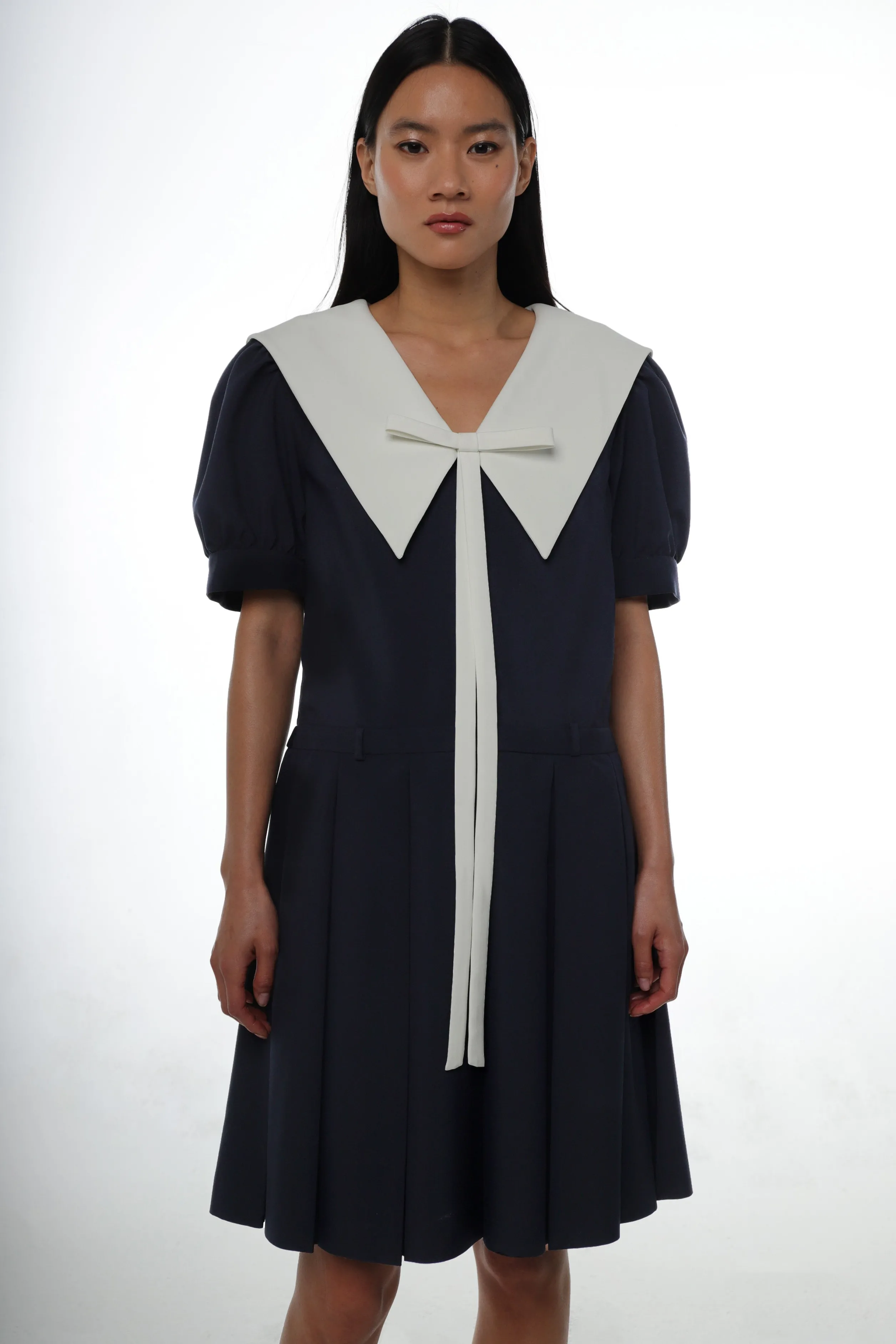 Large contrast sailor collar with bow detail