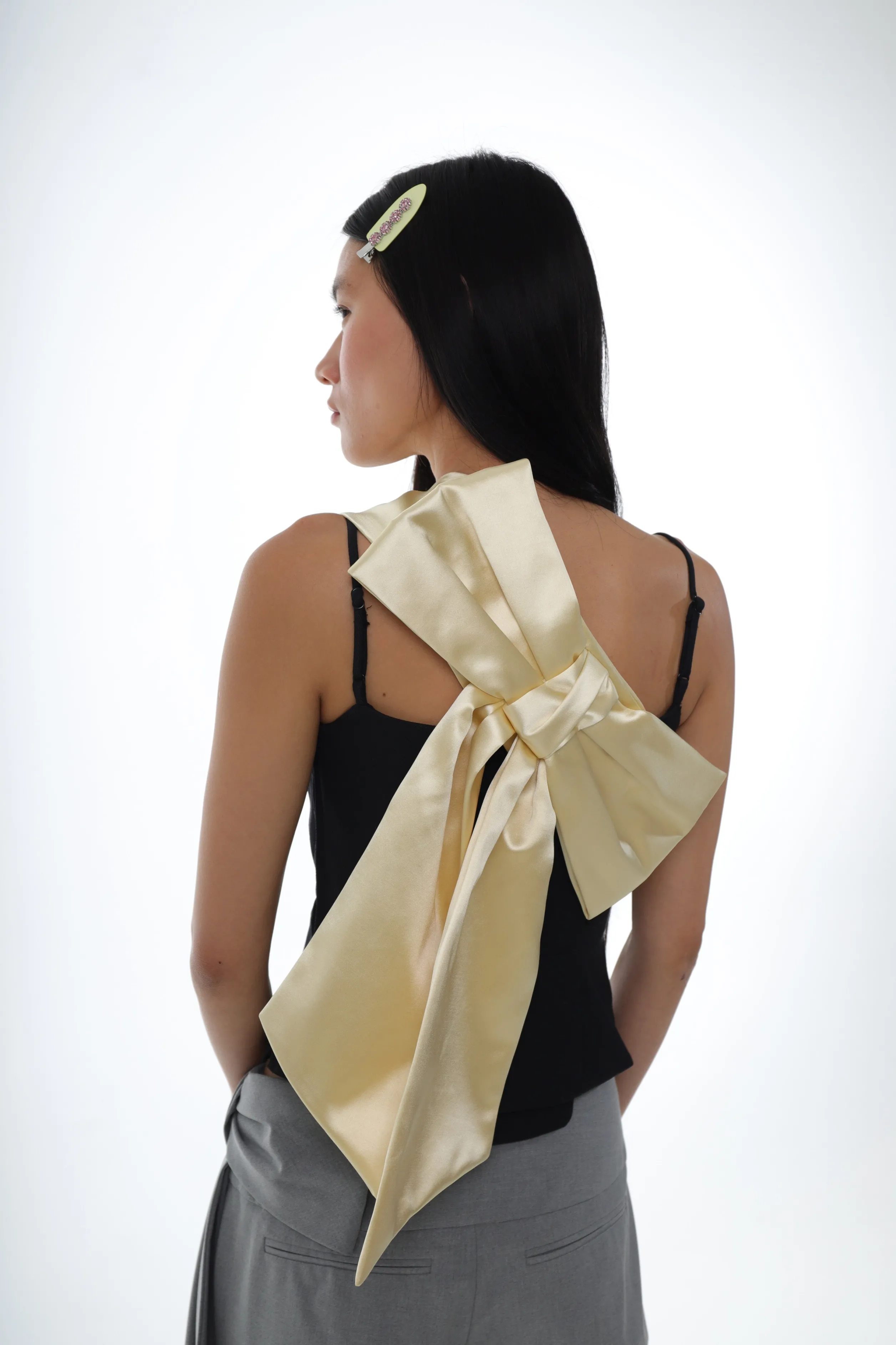 Adjustable sash bag in Butter Made in a heavyweight satinDesigned to be worn crossbody or as a belt Zip closure