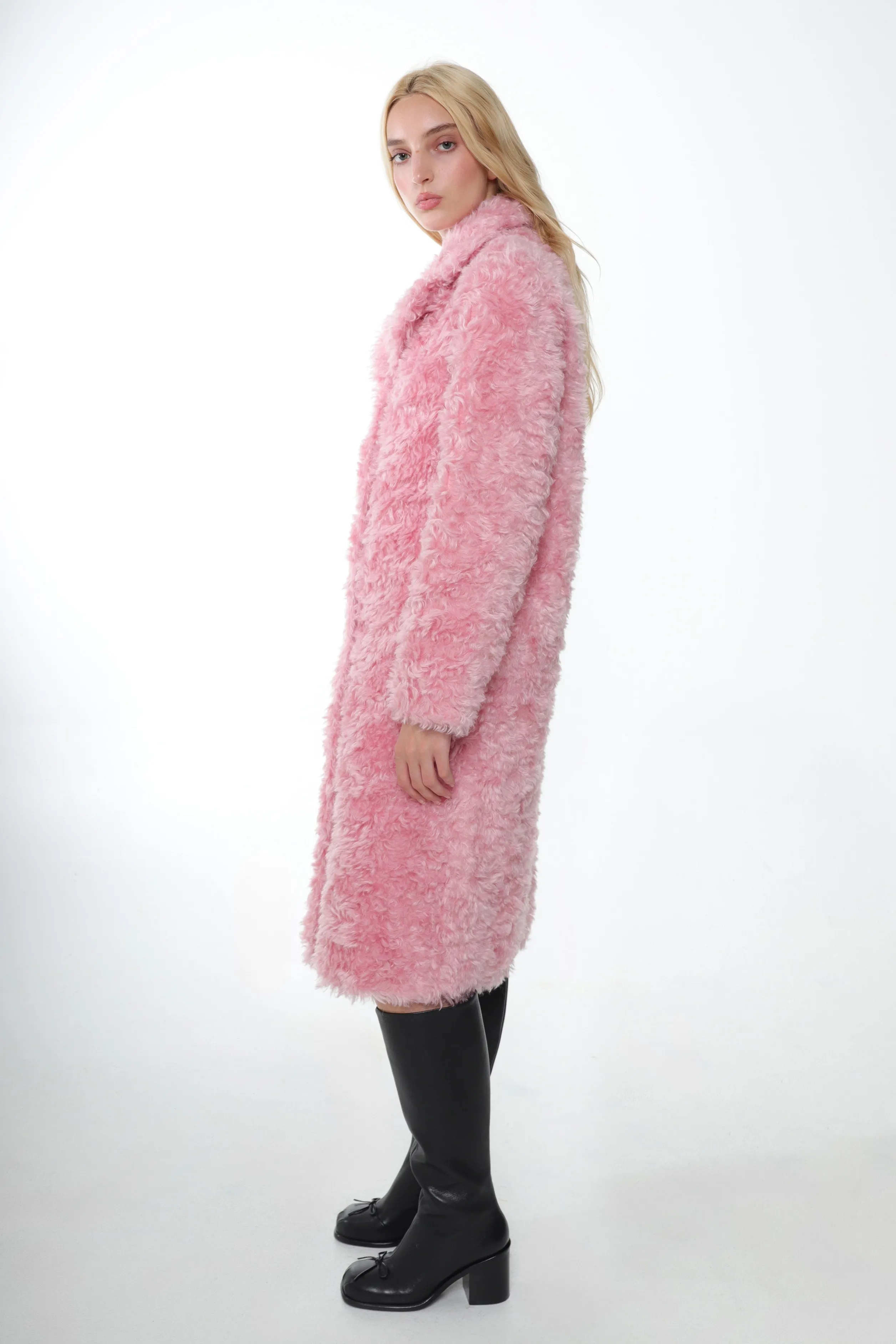 Full length coat in Pink Mohair
