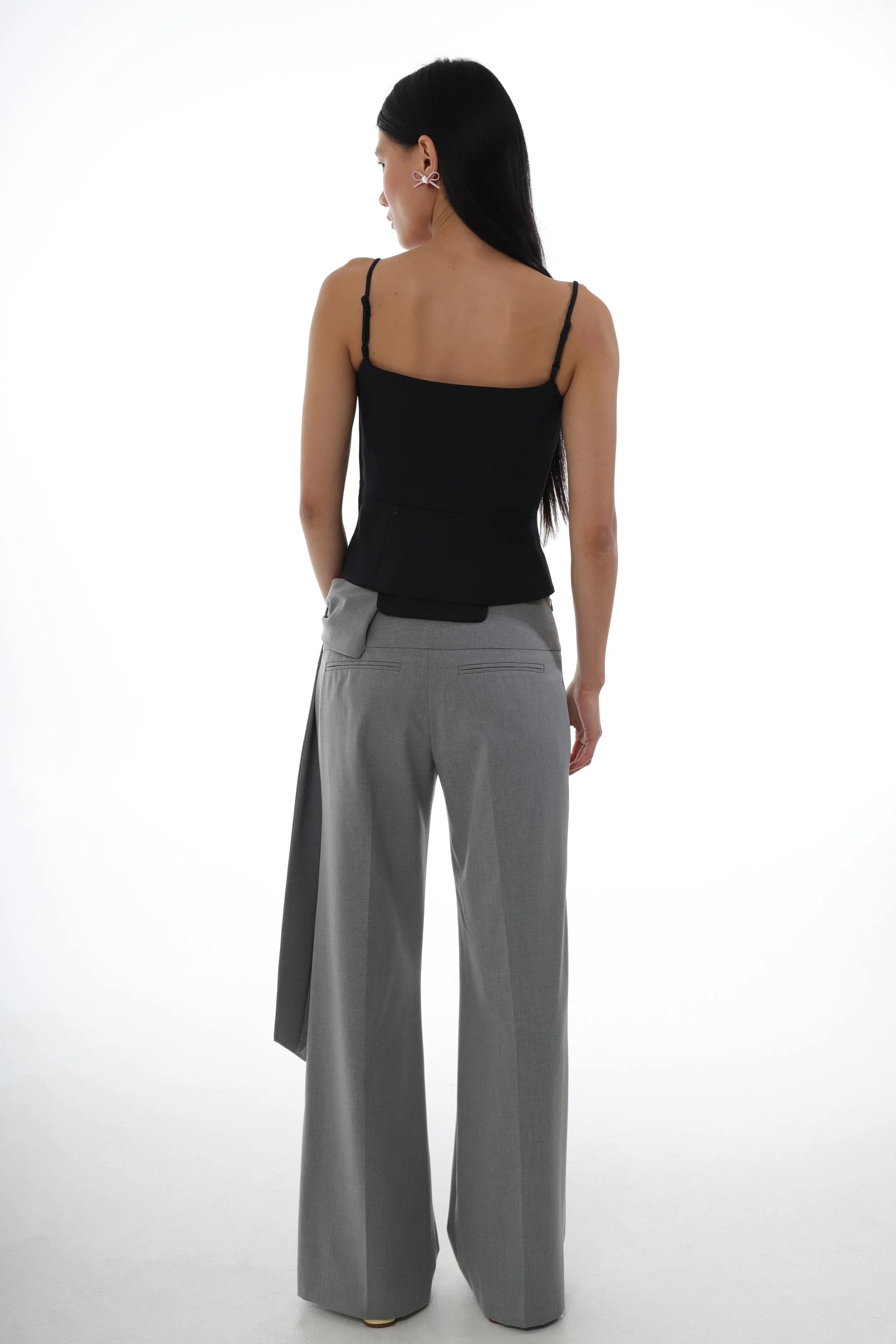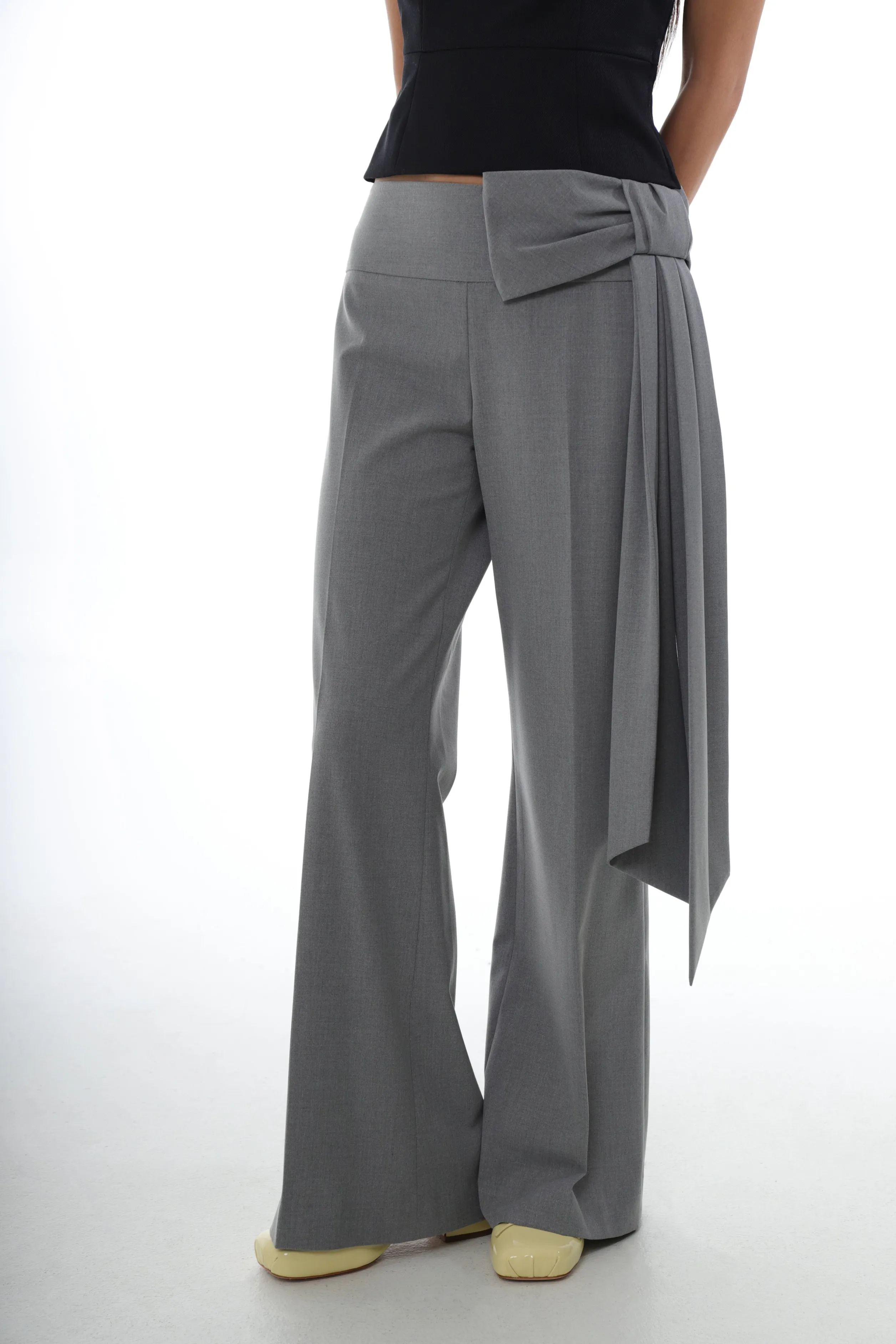 Full length low rise trousers in Light Grey suitingFeatures oversized bow detailWelt pockets in backMade in NYC